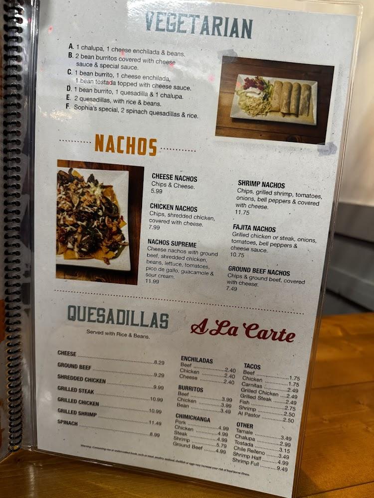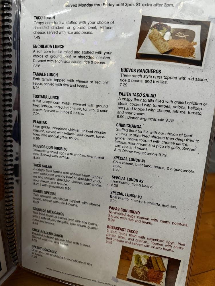 Daily specials feature rotating dishes and fresh ingredients. Even vegetarians find satisfying meals here. Options like chile relleno and seafood dishes cater to diverse palates, ensuring every diner leaves satisfied.